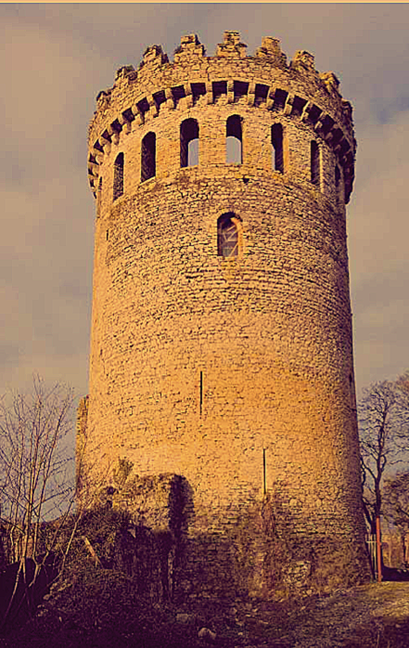 In subsequent years the Donjon was enveloped in ivy which later caught fire. Still the structure stood. Some time later, in 1760 Solomon Newsome whose property backed onto the castle, made an attempt to remove the Donjon as it was harbouring nesting birds who were eating his crops in the field where St Mary's RC is now. Solomon tried to shift the tower with gunpowder but succeeded in only creating a huge chasm in the Donjon walls. The final indignity to the tower was when it was drastically altered by the adding of the crenellations in the Victorian period as per the tower at Windsor Castle. This was an attempt to turn it into a Church belfry as an addition to an Augustus Pugin style Church that was never built. However the clergy failed to collect enough money to build the church and the money already collected was redirected to create the folly we now see. This conceit has become an iconic but to my mind an over used symbol of the Town of Nenagh.