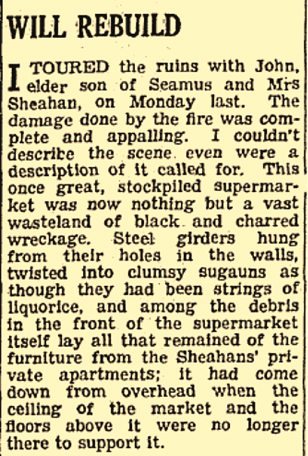 15/07/1972 - Sheehan's supermarket fire (Nenagh Guardian)