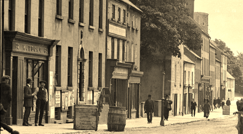 Barrack St before the advent of Automobiles, This was taken during WW1. Still looks busy albeit at a more gentle pace. This photo was taken at the junction of Abbey/Chapel Lane and Barrack St. We know it's WW1 because of the poster pasted to the R.I.C. barrack walls