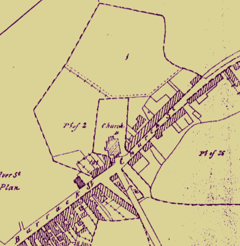 There were upwards of 60 houses there in 1851. It stretched from the old C.O.I church in Barrack St to the boundary of Nenagh Hospital/Workhouse. There was no Stafford St either. Initially it was proposed that a level crossing would be a cheaper alternative but the matter ended up being debated in Westminster and Church St was removed to make way for the Bridge (see map of Church St below)