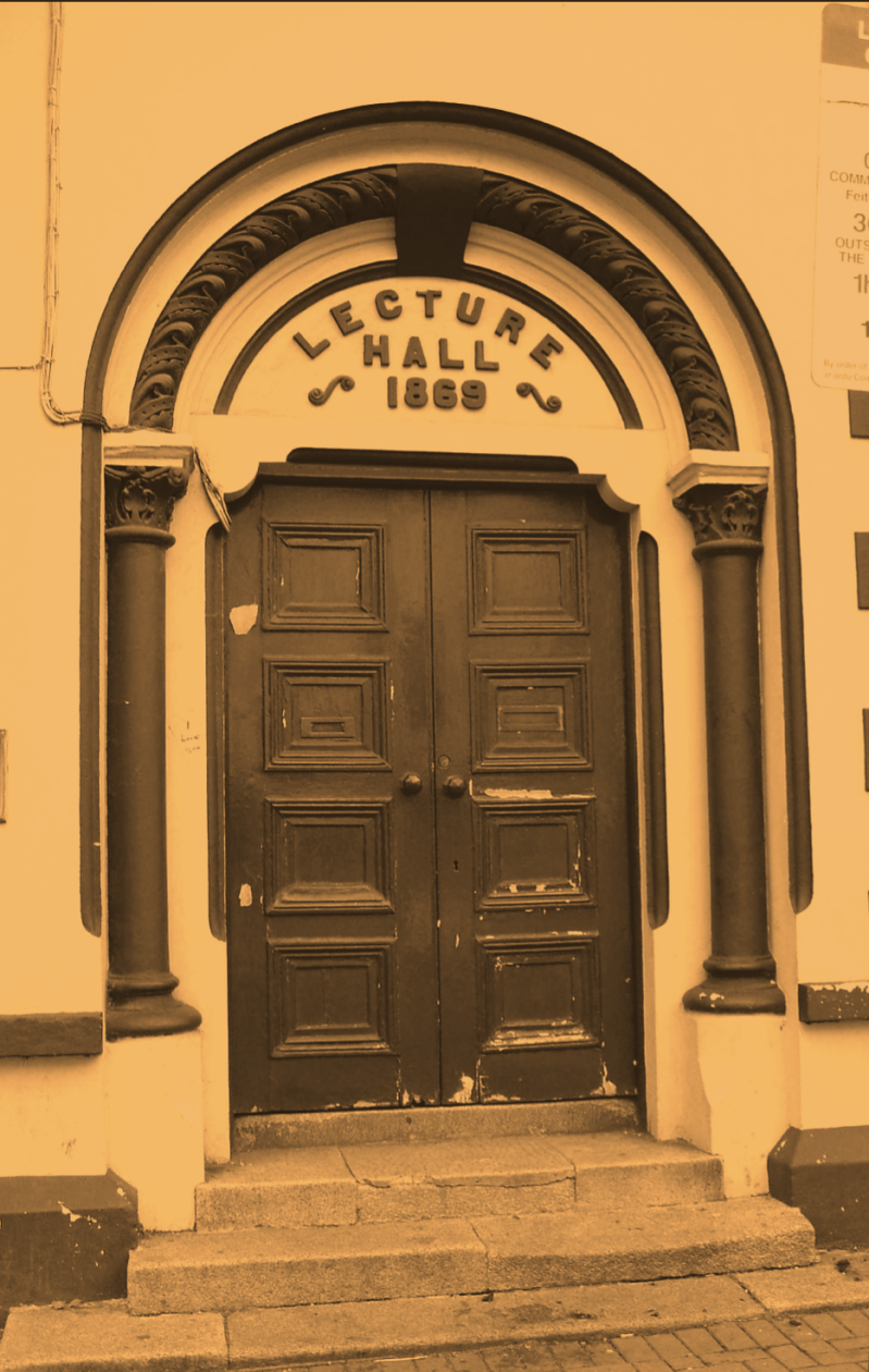 Lecture Hall designed by William Fogarty and built by Jeremiah Toohey 1869. This form of Archivolt was used twenty years later in the construction of the Town hall