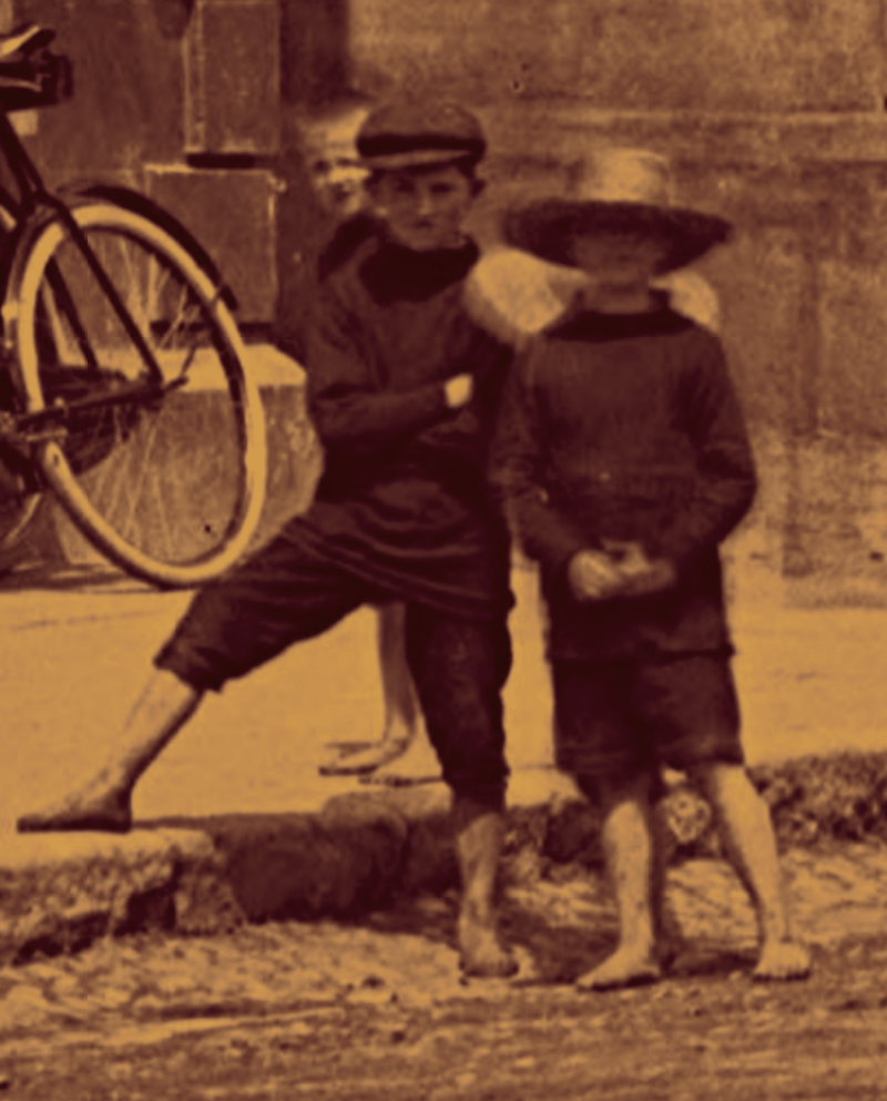 Nenagh's very own Street Urchin with bare feet and flat cap. Straight out of Charlie Chaplin