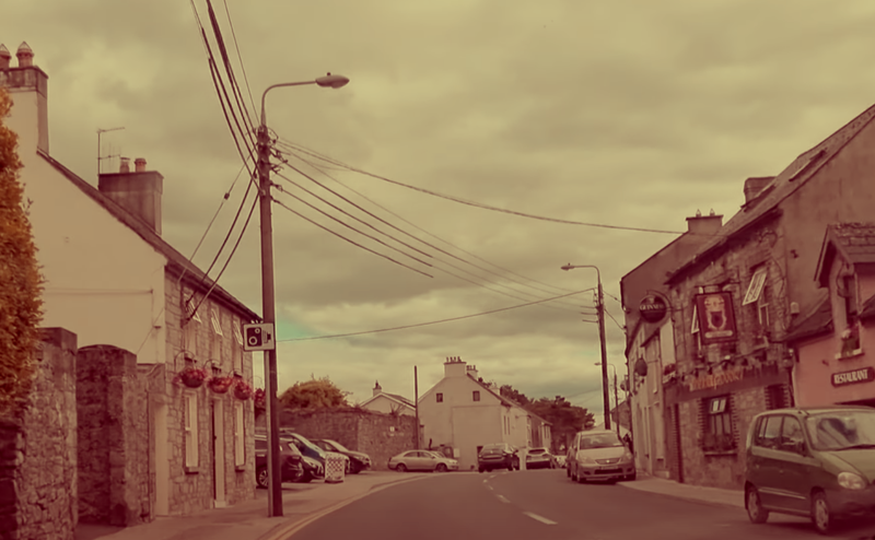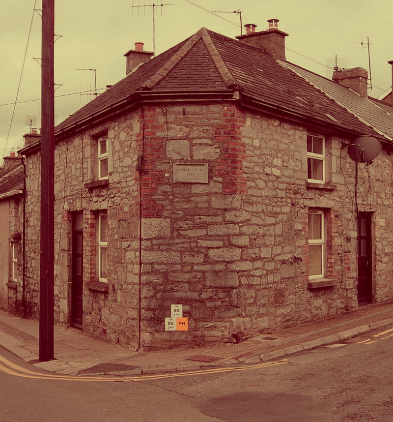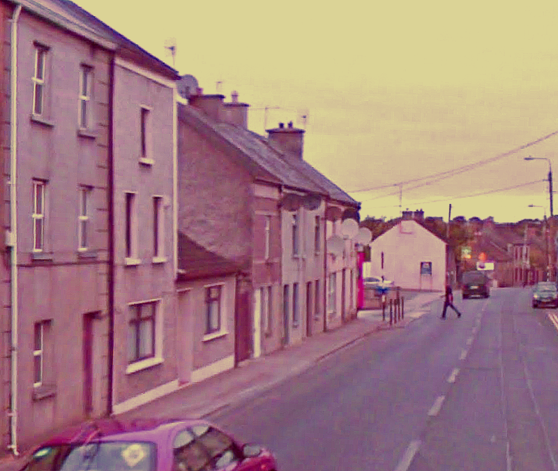 On the corner of Birr Road and Turnpike the once beautiful stonework of Harkness Place now concealed by render
