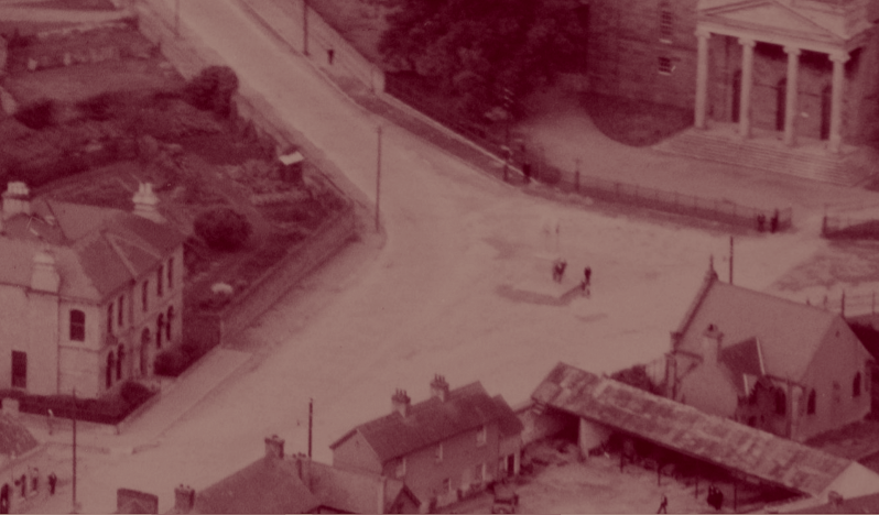 Before the monuments in the square, before the traffic restrictions, when a statue dominated the skyline. and when the railings had lamps. On fair Days, Banba Square was reserved for Sheep with the pens tied to the railings