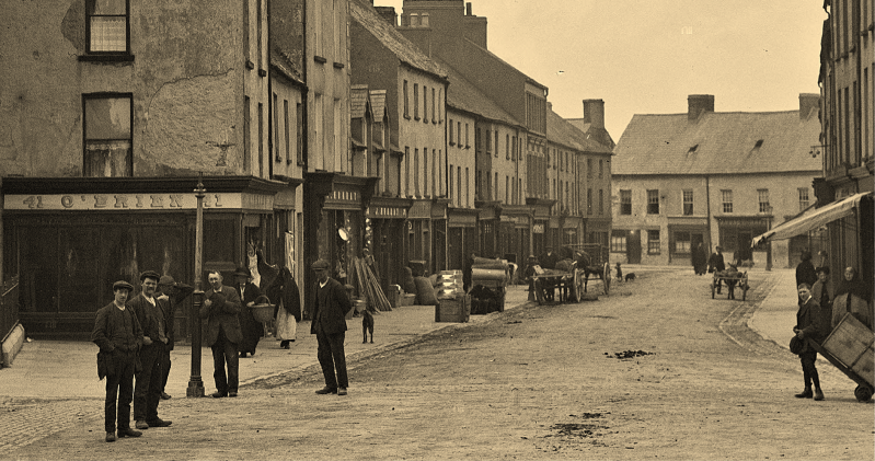John O'Briens butchers and the corner boys waiting for the Market Cross bars to be built circa 1915