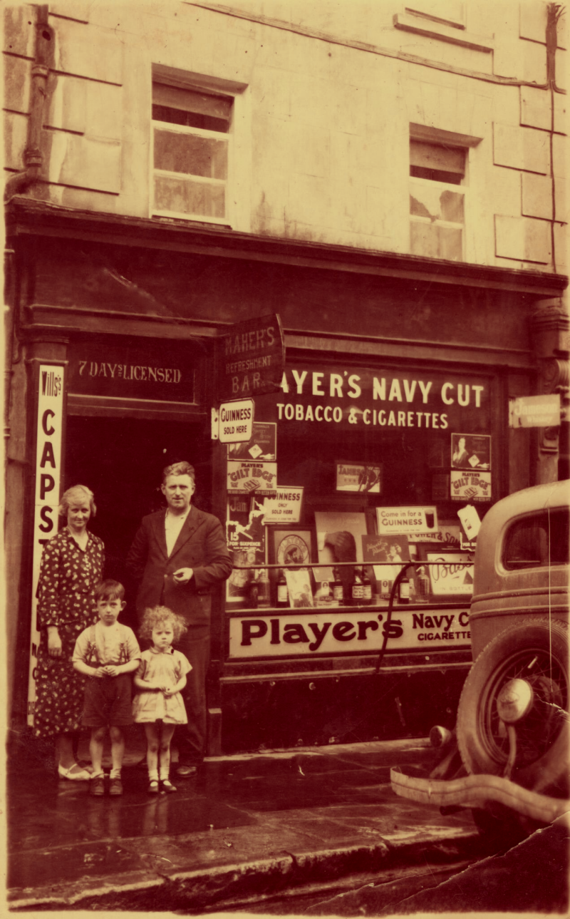 Nora Talbot and son Philip in their Drapers. The next door shop at 34 used to be the residence for Art Tutor Andy Lennox. Talbots was once the residence of Denis 'Sonny' O'Neill, alleged slayer of Michael Collins