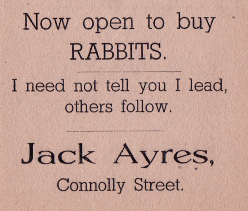 Some advertisements from 1942 from Jack Ayres, Mackeys and Dinny Gleeson