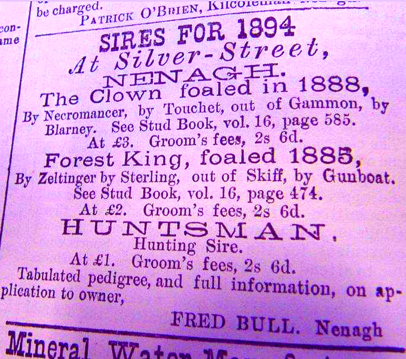 It was around this area that the Gateway and main thoroughfare into Nenagh through the old town walls was to be found - Thomond Gate giving rise to Thomond Lane aka Bournes Lane. Bournes Lane was named after Captain Richard Bourne who owned the nearby Coach office and stables. The Bourne family won the first Coach / Mail contract between Limerick and Dublin in 1791